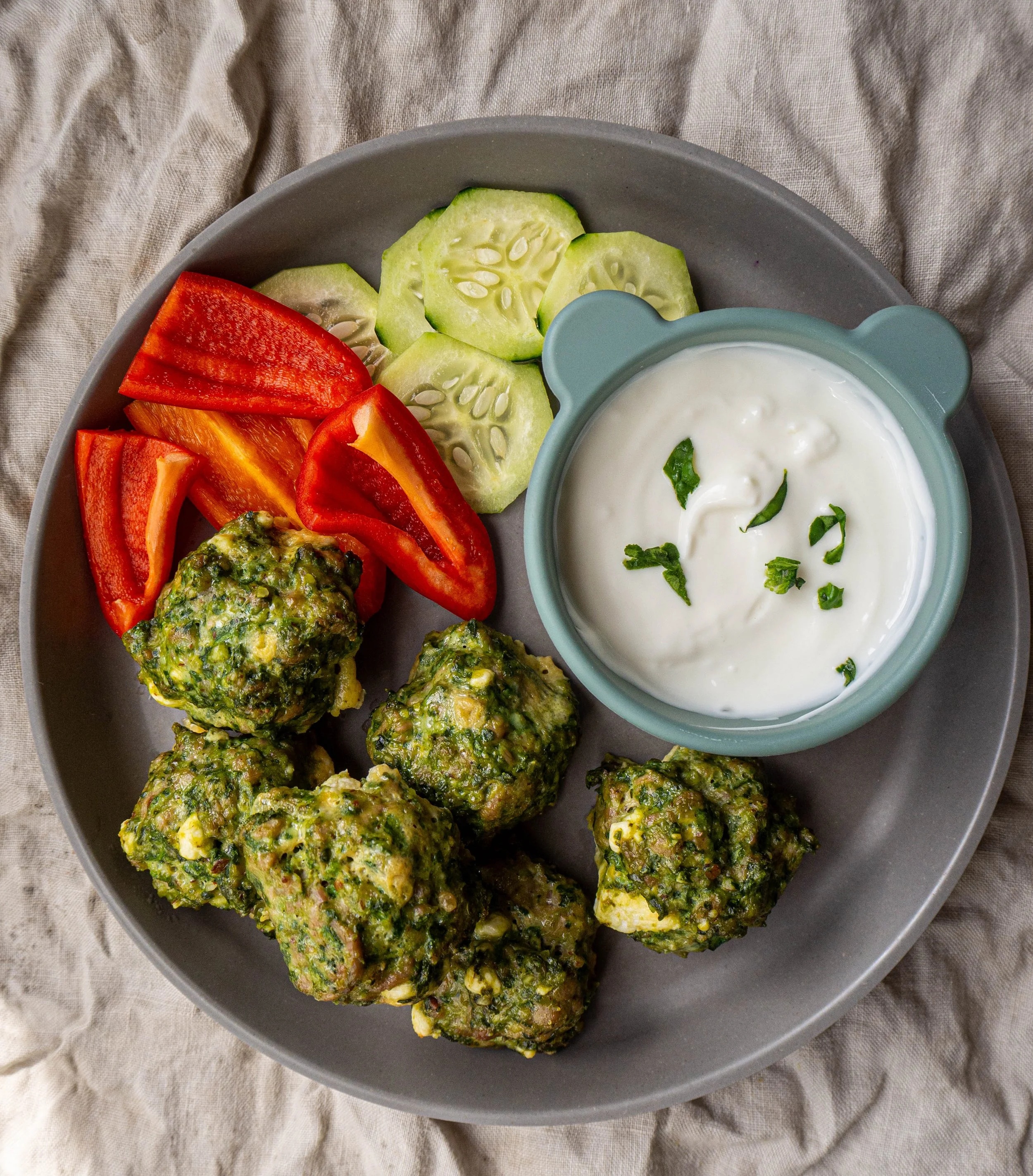 I am a HUGE fan of meatballs when it comes to getting a lot of nourishing ingredients into your little one’s body. Meatballs are a fun thing to have on hand as they are super customizable and if your kids are anything like mine, it’s all about having something fun to dip into a sauce or favorite condiment. These meatballs were a hit with my 3 year-old as she loved dipping them into yogurt. If your kid is a fan of ketchup try that. These also work great dipped in pesto, hummus or a homemade tzatziki sauce.